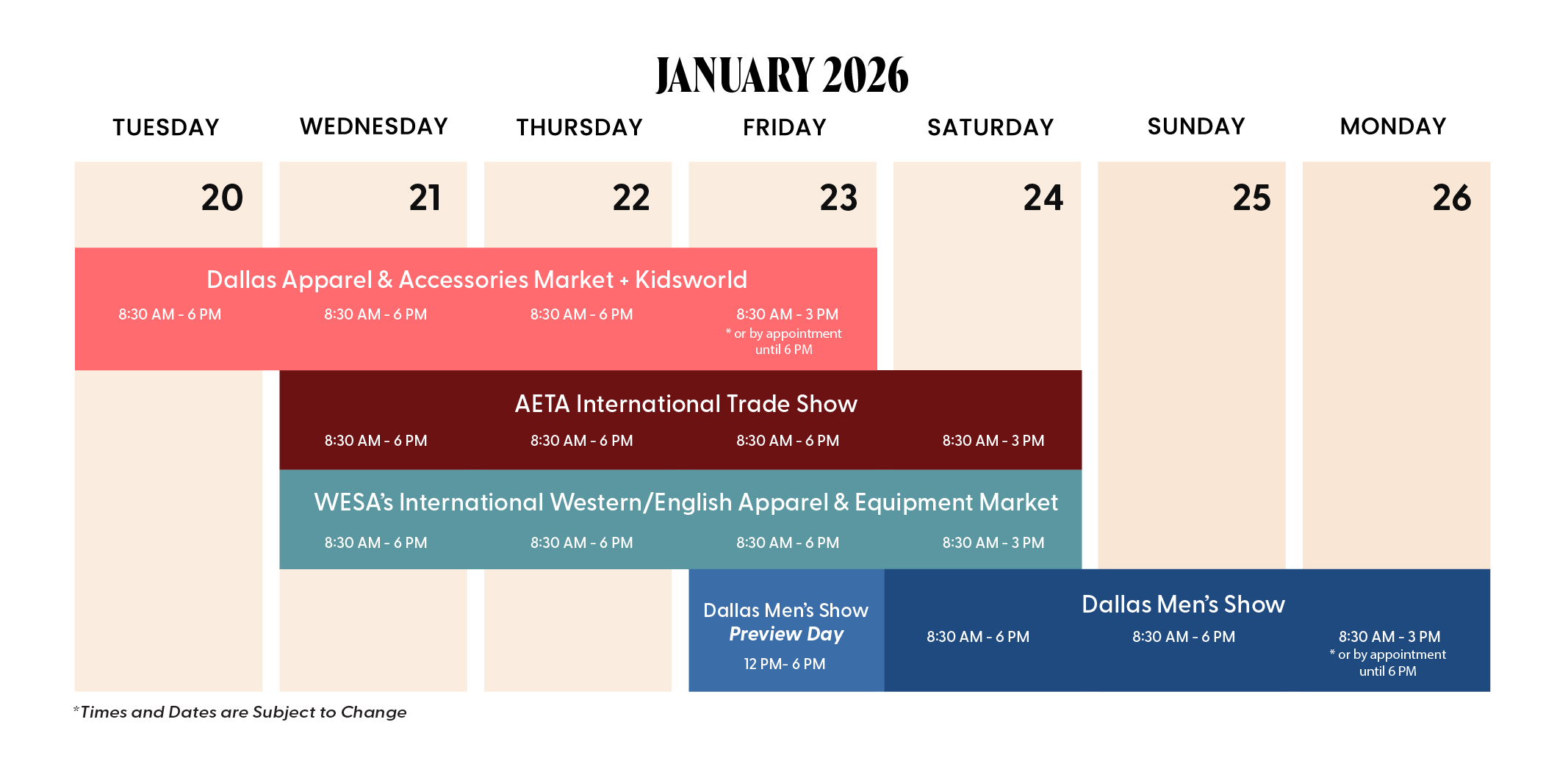 The first Apparel & Accessories Market of the year is a vibrant showcase of what’s on trend now and upcoming styles in women’s apparel, accessories, and footwear. We’ve curated the best brands together in one location for ease of shopping as well as creating events and activations to educate and inspire you.